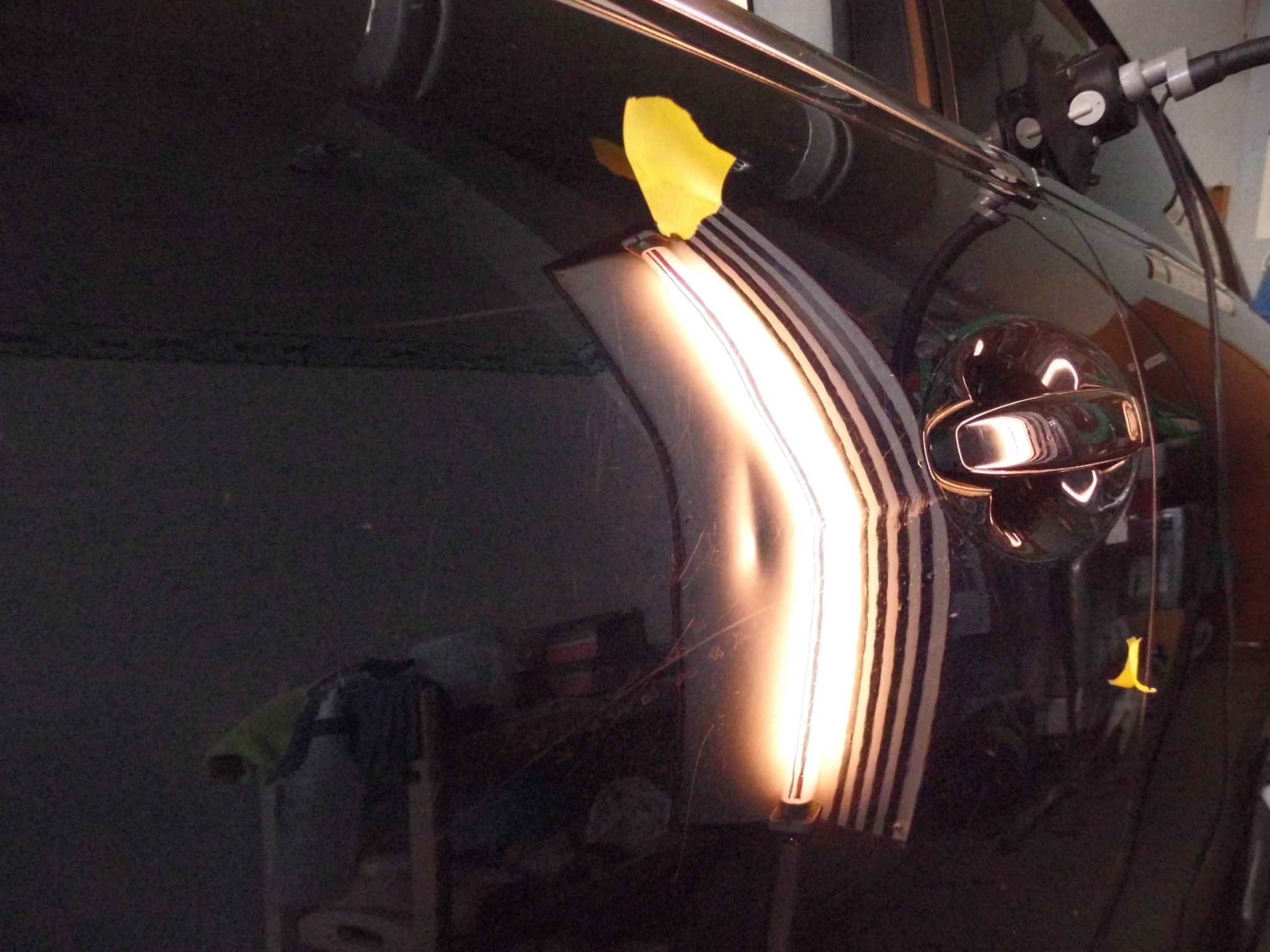 お次は、フロントドアのプレスラインにグッサリとしたヘコミが・・・